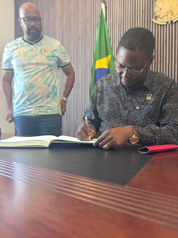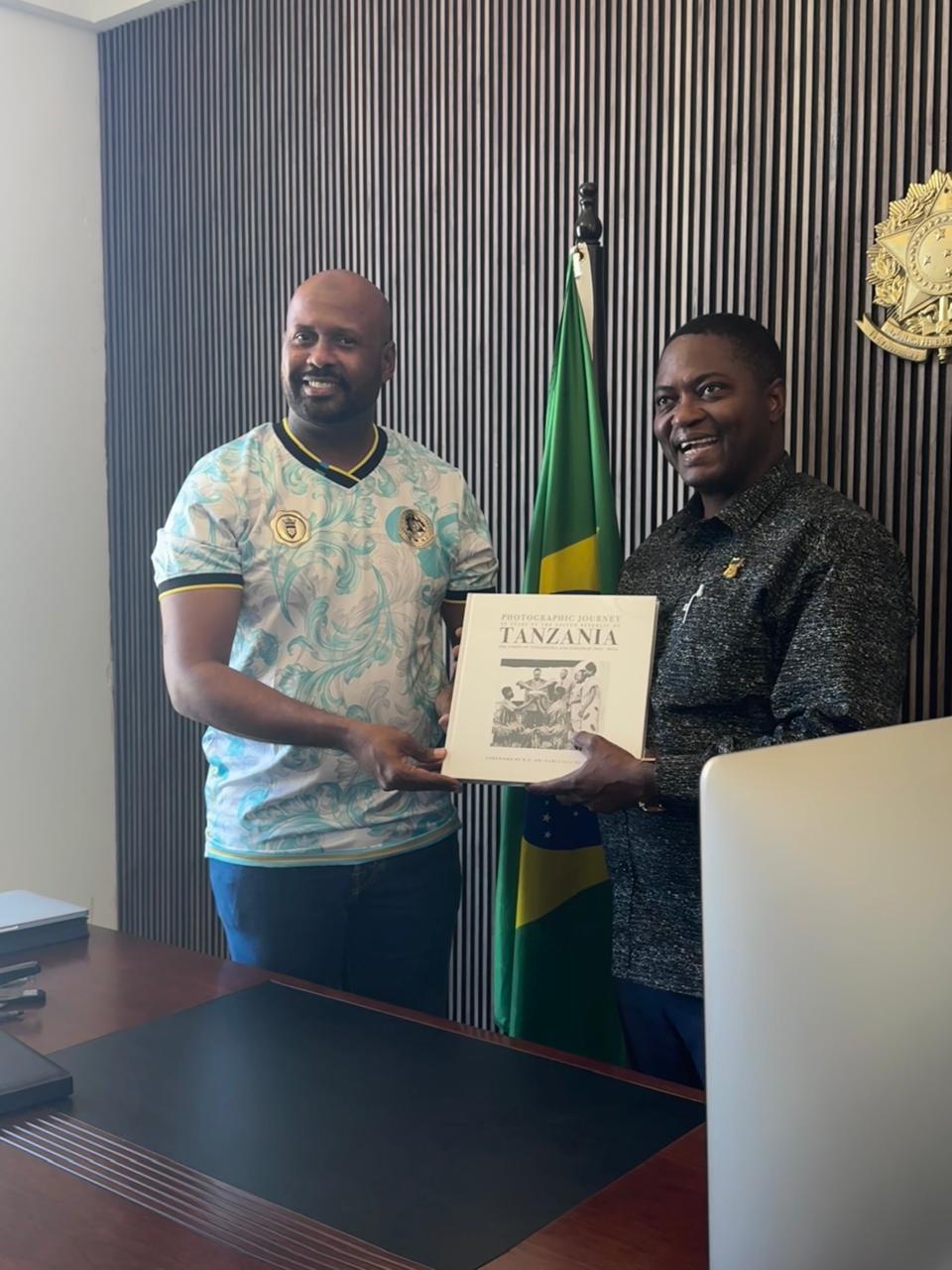 H.E Prof. Adelardus Kilangi was received at the Consulate of Brazil in Zanzibar by H.E Abdulsamad Abdulrahim, the Honorary Consul of Brazil. During the Courtesy call the Ambassador of Tanzania was gifted a beautiful book about the history of Zanzibar.