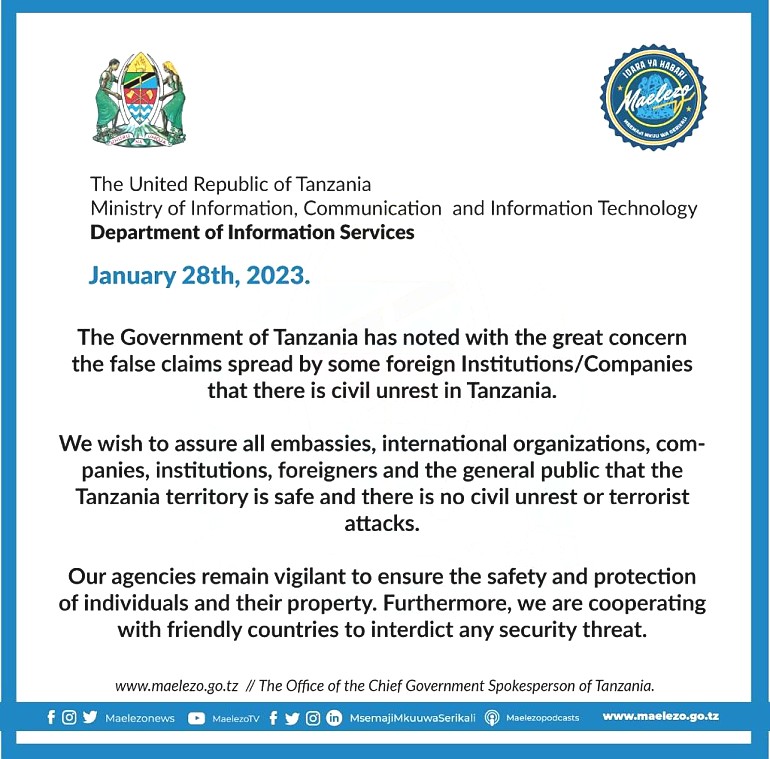 No social unrest or terror attack threats in Tanzania